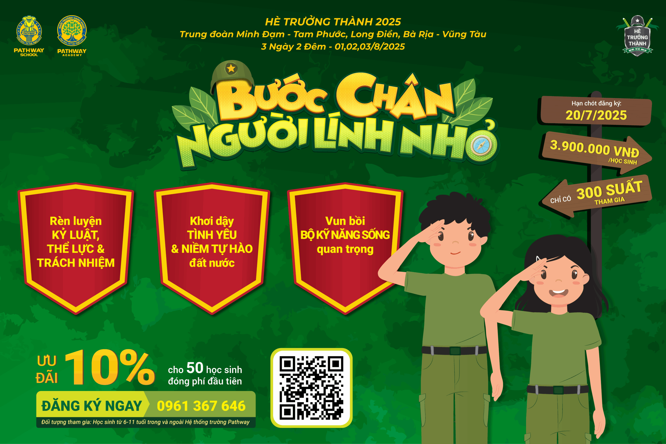 Mỗi mùa hè trôi qua là một dấu mốc trong tuổi thơ con trẻ. Và nếu có một mùa hè để con thực sự SỐNG KHÁC, rời xa màn hình, thoát khỏi nhịp sống quen thuộc để tôi luyện bản thân, đó chính là Hè Trưởng Thành 2025 của Pathway.