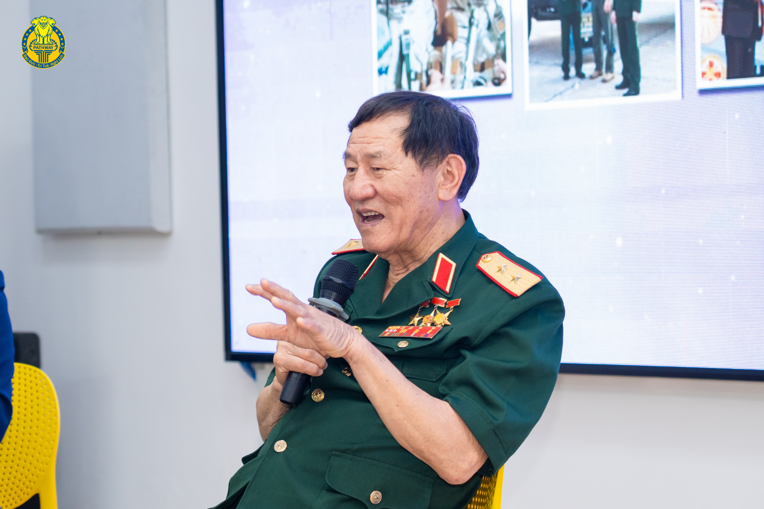 Trong ánh mắt chăm chú của các con, có sự tò mò, ngưỡng mộ và cả xúc động. Các con lắng nghe bác kể về những năm tháng rèn luyện để trở thành phi công, về trận chiến Điện Biên Phủ trên không năm 1972 đầy khốc liệt, và về khoảnh khắc đặc biệt khi được bay vào vũ trụ bao la, nhìn ngắm Trái Đất từ một góc nhìn chưa từng có.