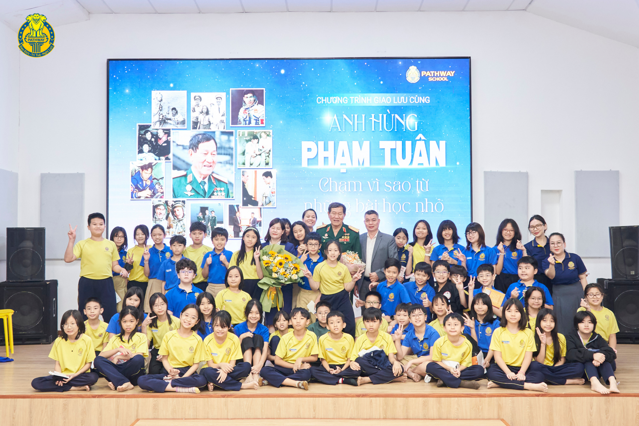 Sáng nay, trong không khí trang trọng và đầy cảm xúc tại cơ sở Lương Định Của, các em học sinh Tiểu học Pathway School đã vỡ òa niềm háo hức khi được gặp gỡ Trung tướng, Anh hùng Lực lượng vũ trang Nhân dân Phạm Tuân – nhân chứng sống của lịch sử dân tộc.