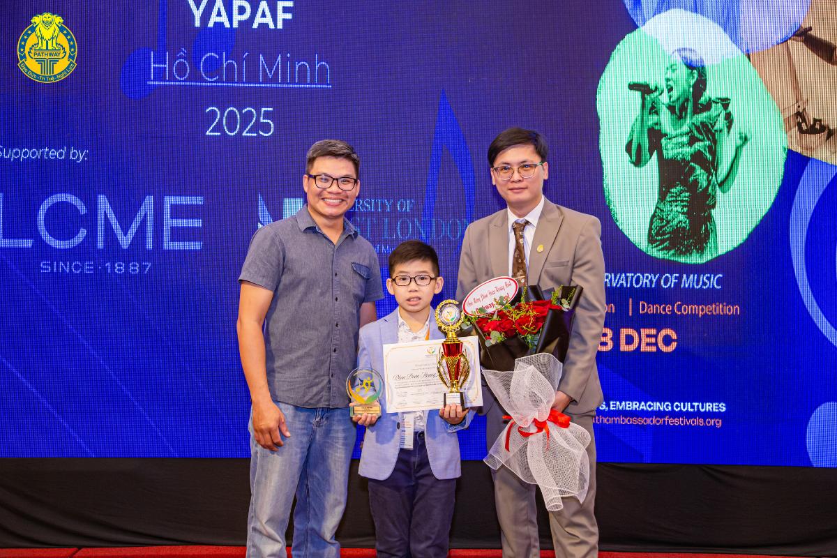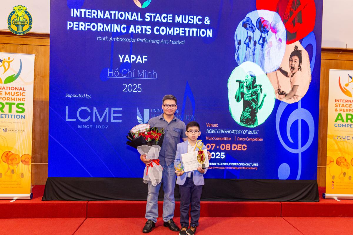 Pathway School tự hào gửi lời chúc mừng đến em PHAN DOÃN HOÀNG MINH, lớp 4P1, Tiểu học Pathway School đã đạt Giải NGHỆ SĨ XUẤT SẮC – giải cao nhất tại sân khấu Youth Ambassador Performing Arts Festival (YAPAF) 2025. Hạng mục Piano – Bảng 9 – 12 tuổi.