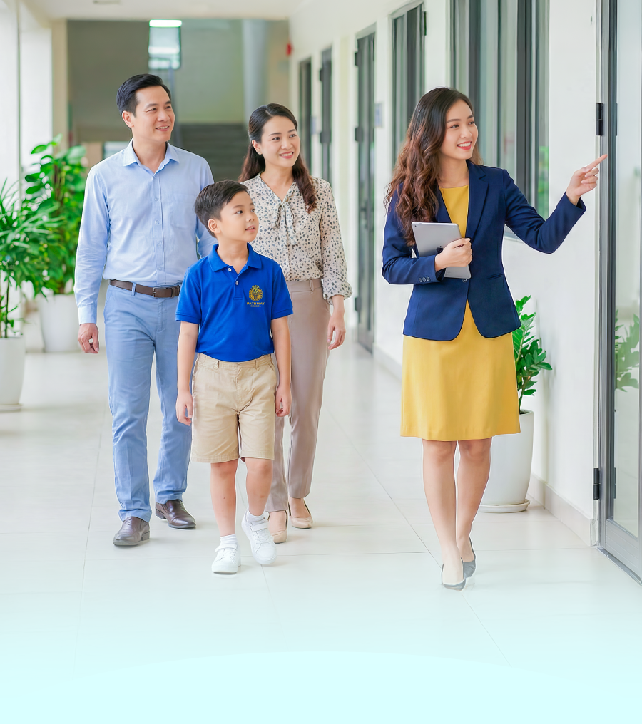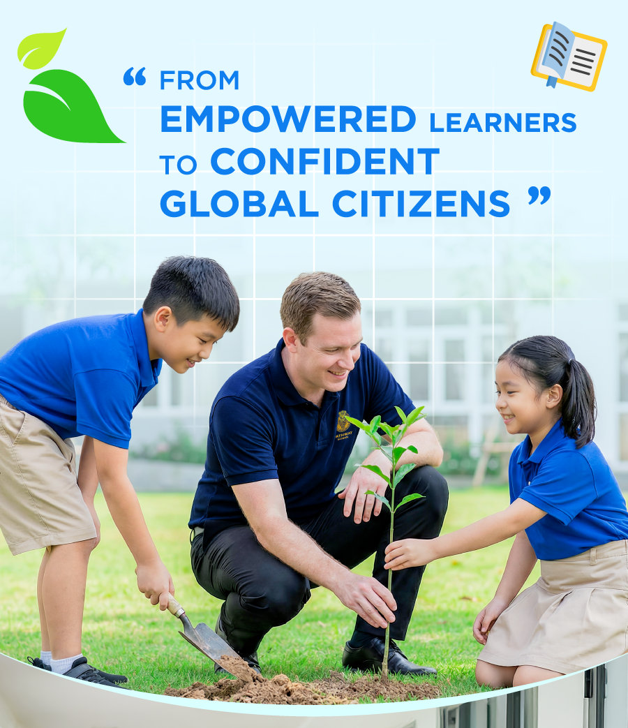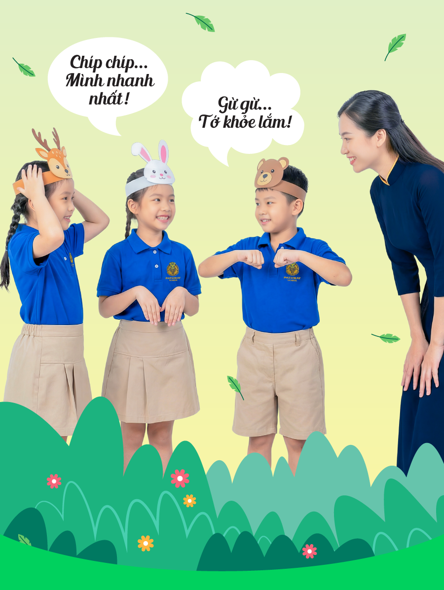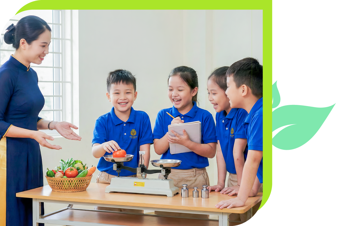 Hướng đến mục tiêu đầu ra ở bậc Tiểu học là A2 (tương đương Cambridge cấp độ Flyers) dựa trên khung tham chiếu trình độ ngôn ngữ chung châu Âu (CEFR), học sinh từ lớp 1-5 được học tiếng Anh 10 tiết/tuần, trong đó 40% thời lượng học với giáo viên người nước ngoài. Bên cạnh đó, các phần mềm học tập online E-learning được sử dụng nhằm đảm bảo tính toàn diện và hiện đại trong việc phát triển ngôn ngữ tiếng Anh cho trẻ một cách tự nhiên.