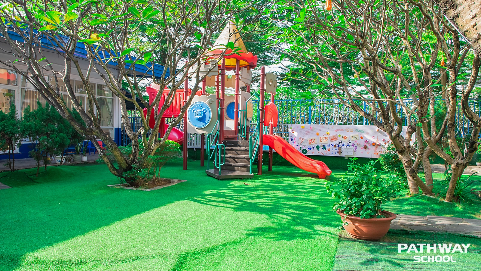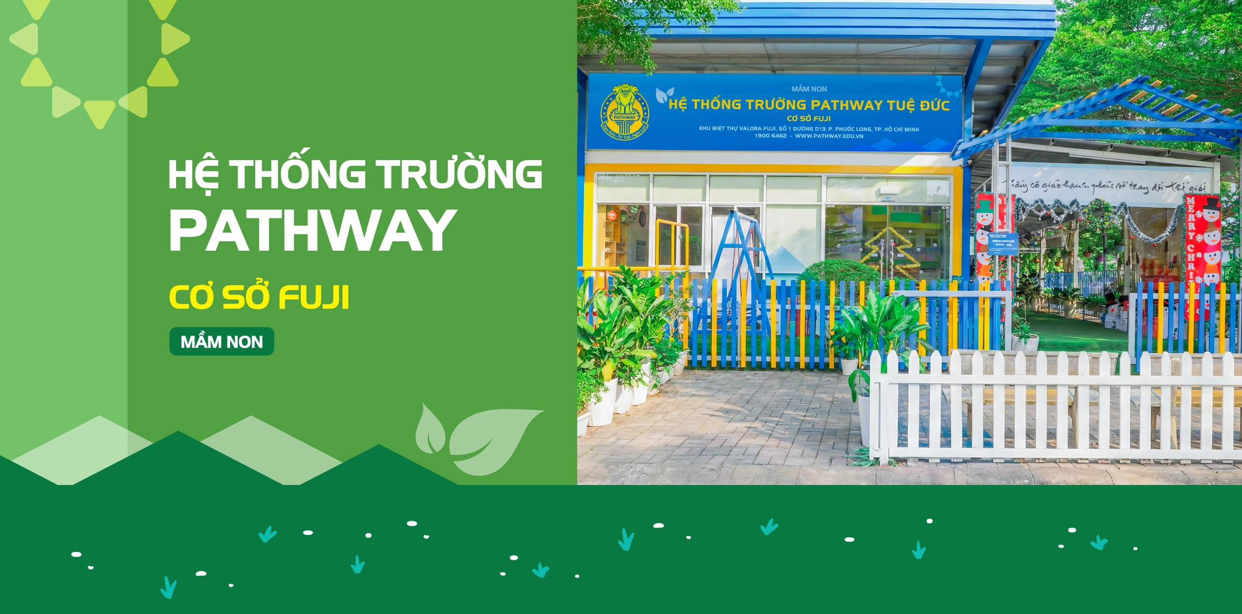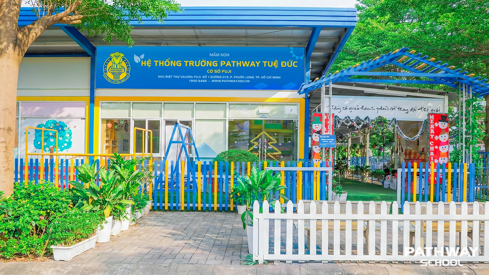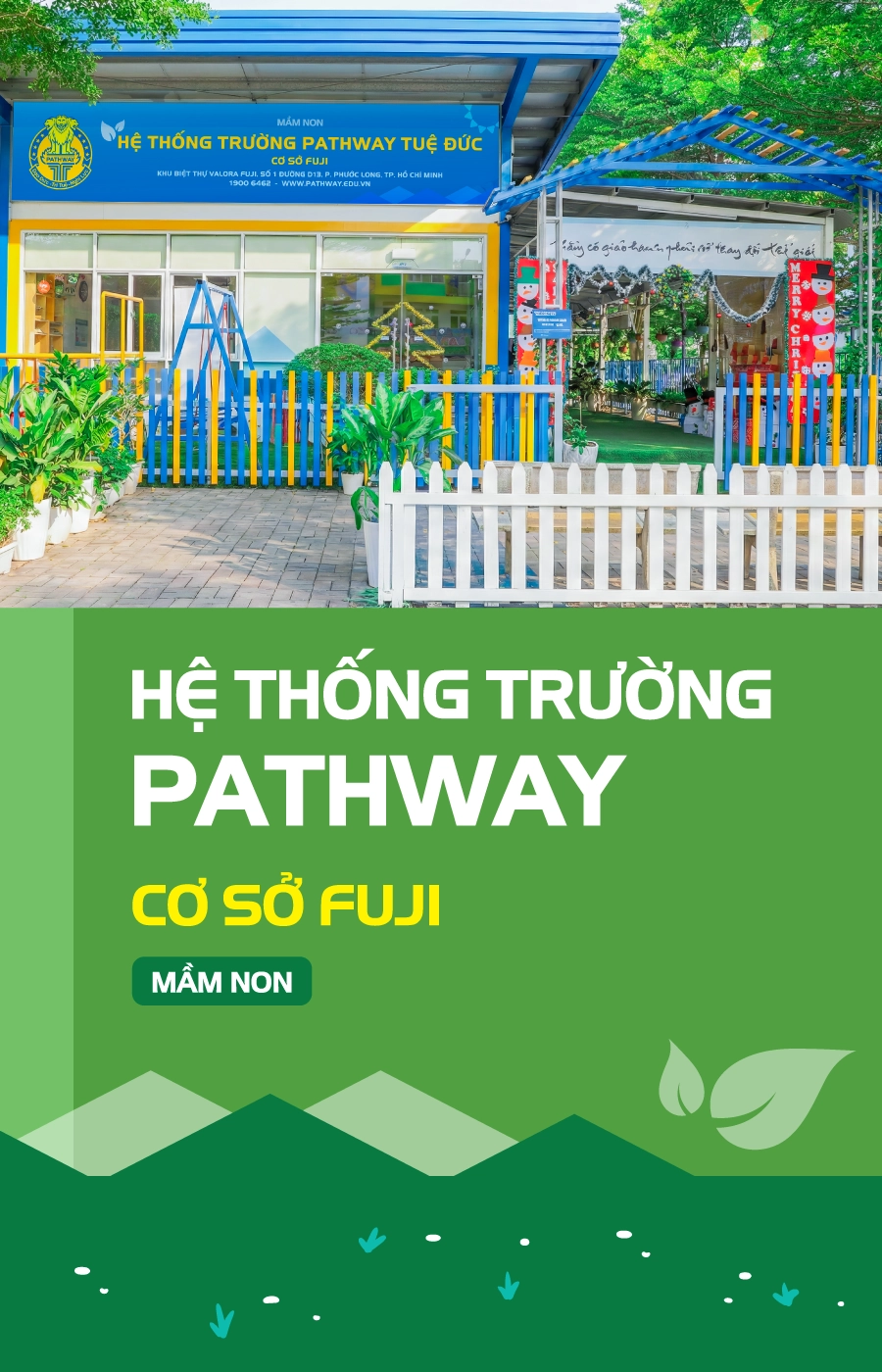 Mầm non Pathway School, ngôi trường khang trang và hiện đại, tọa lạc tại Khu biệt thự Valora Fuji, Số 1 Đường D13, P. Phước Long, TP.HCM