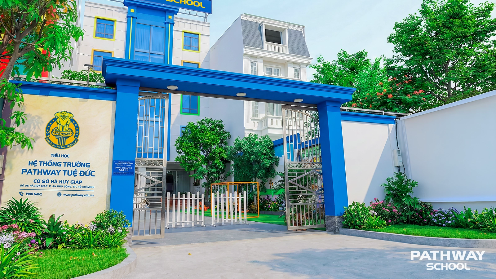 Tiểu học Pathway School, ngôi trường khang trang và hiện đại, tọa lạc tại số 06 Hà Huy Giáp, P. An Phú Đông, TP.HCM