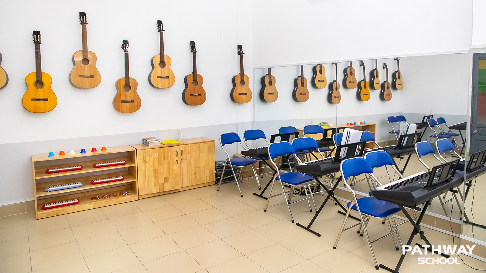 Không gian âm nhạc giúp học sinh cảm thụ, biểu đạt và phát triển năng khiếu thông qua các hoạt động học tập và biểu diễn.