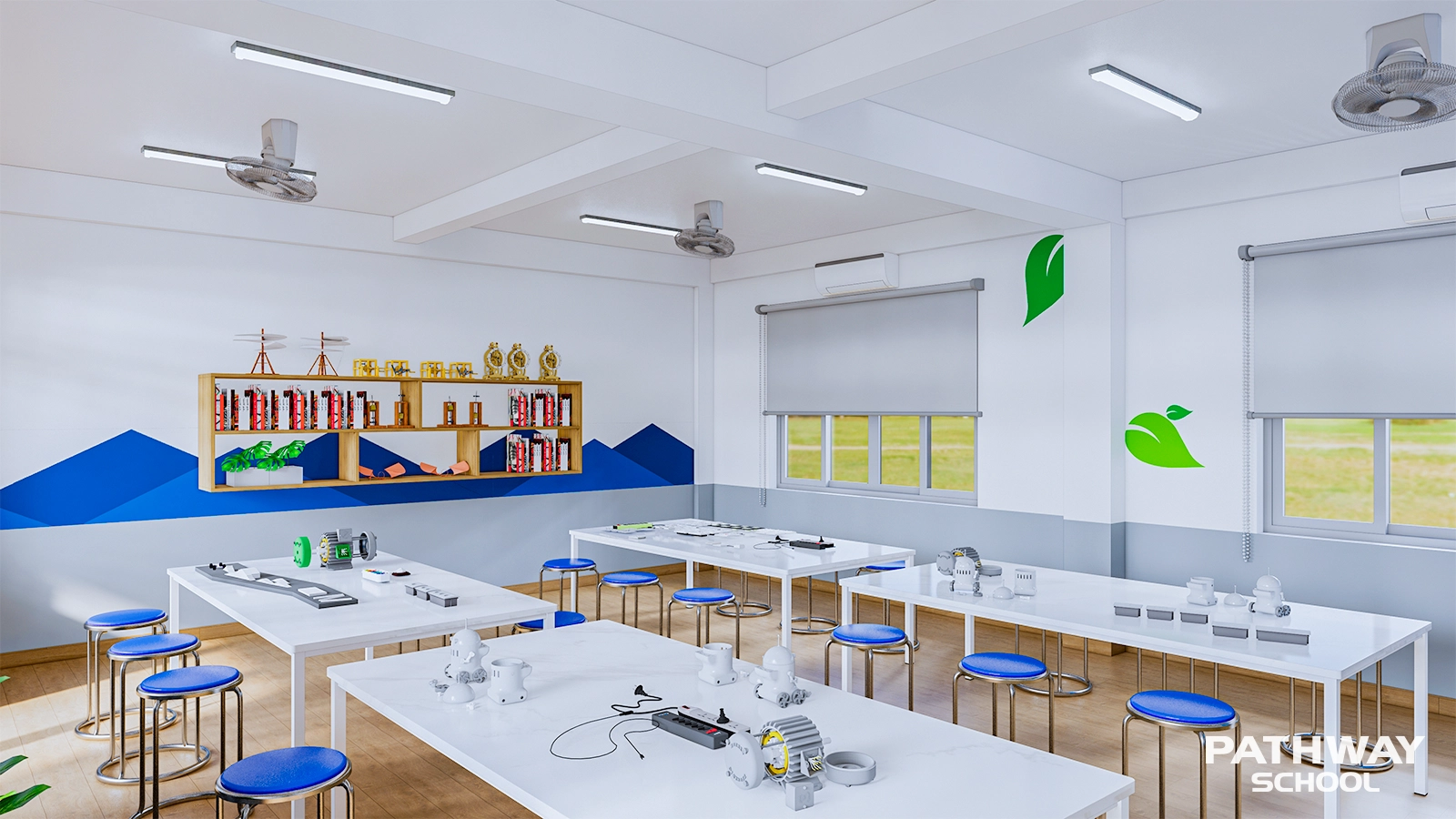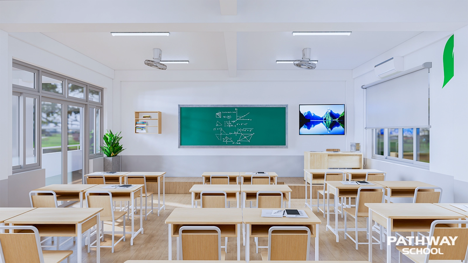 Lớp học được thiết kế khoa học, tạo môi trường học tập tập trung, khuyến khích trao đổi và phát triển tư duy độc lập.