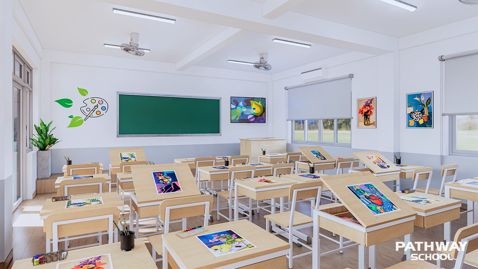 Môi trường học tập giúp học sinh thể hiện ý tưởng, nuôi dưỡng cảm xúc và phát triển tư duy sáng tạo qua nghệ thuật.