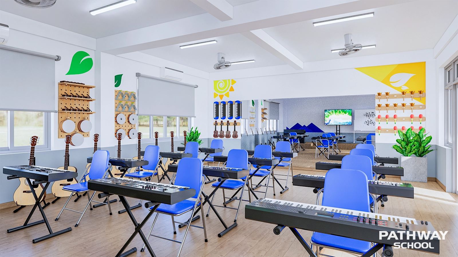 Không gian âm nhạc giúp học sinh cảm thụ, biểu đạt và phát triển năng khiếu thông qua các hoạt động học tập và biểu diễn.