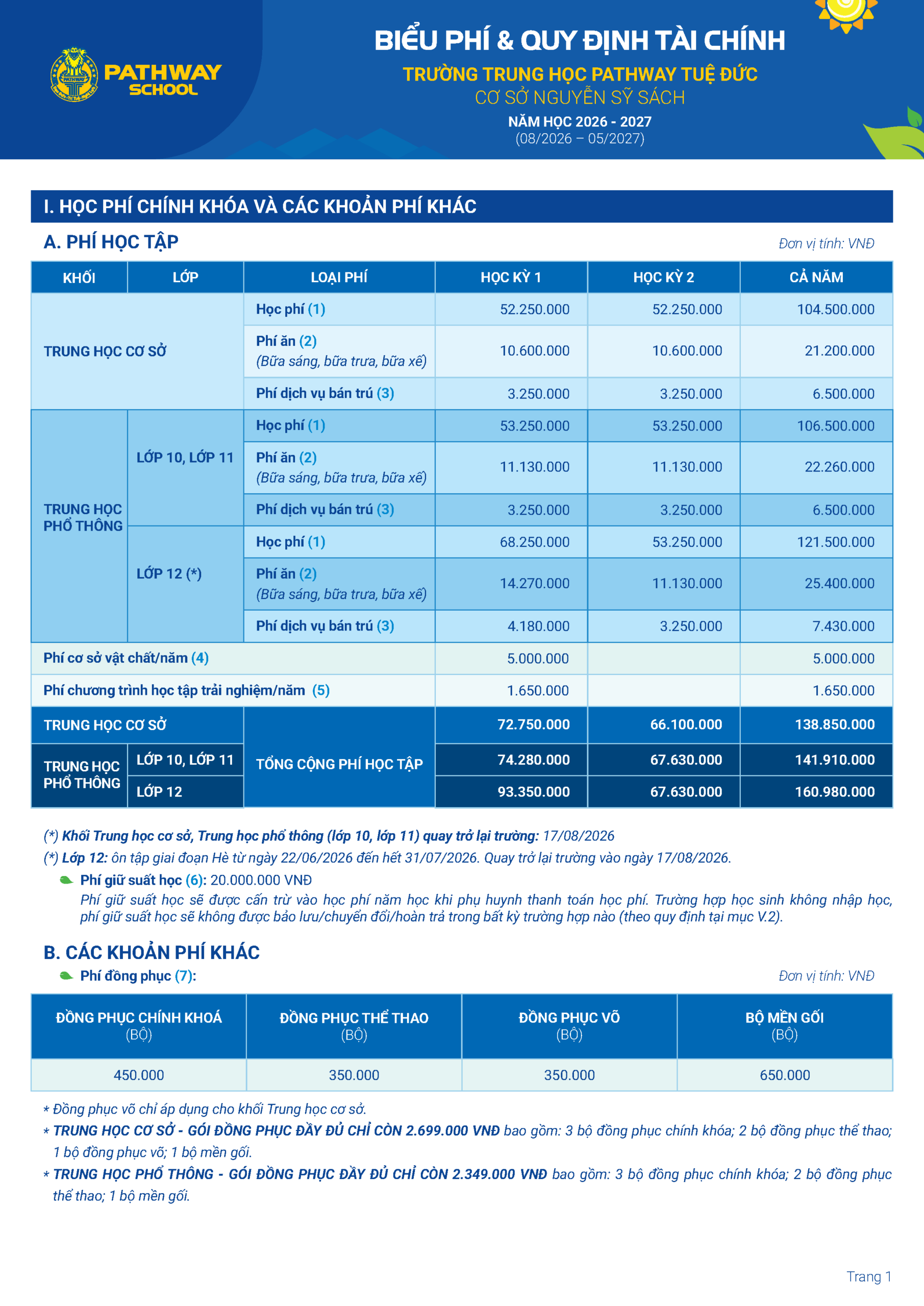 HỌC PHÍ TRUNG HỌC PATHWAY