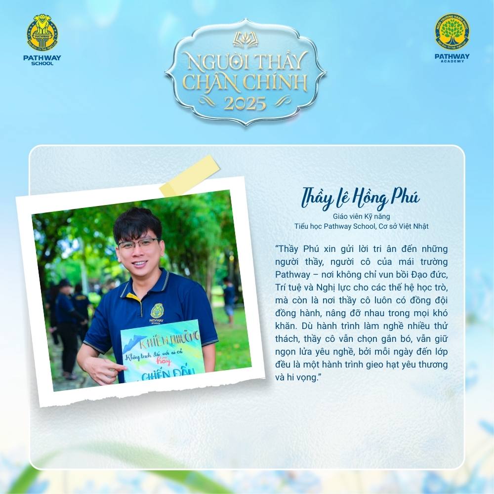 Nghề giáo từ lâu đã được xem là một trong những hành trình nhiều thử thách nhất. Đó là công việc gắn liền với con người, với cảm xúc, với tương lai của biết bao học sinh. Ở Pathway, thầy cô hiểu rất rõ những vất vả ấy, nhưng vẫn chọn bước tiếp, vẫn chọn đứng lớp, vẫn chọn gieo từng hạt mầm hạnh phúc lên mảnh đất mang tên giáo dục.