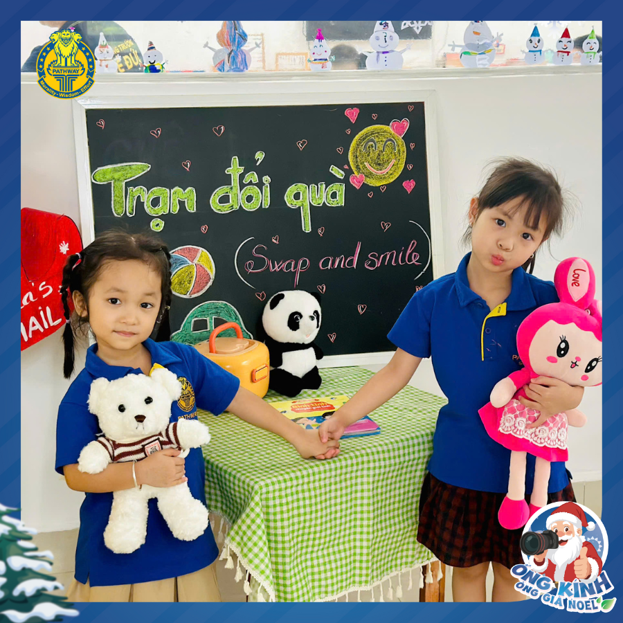 Qua “Ống kính ông già Noel”, từng hình ảnh đáng yêu được lưu lại tại trạm The Swap & Smile Station, sáng rực một góc sân tại các cơ sở Mầm non Pathway School. Ở đó, mỗi em bé mang theo một món quà nhỏ: có thể là một món đồ chơi từng gắn bó, hay một quyển sách con đã đọc vài lần, nhưng vẫn còn nguyên vẹn và được giữ gìn cẩn thận.