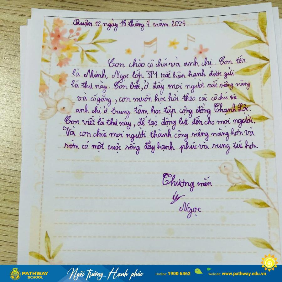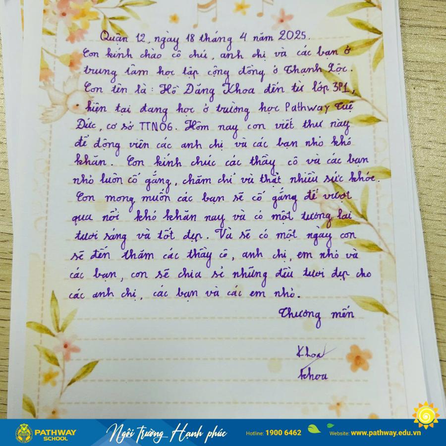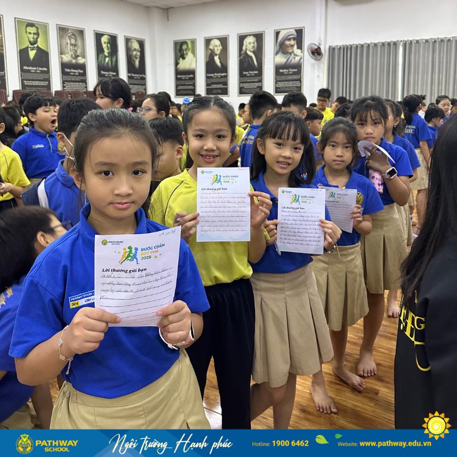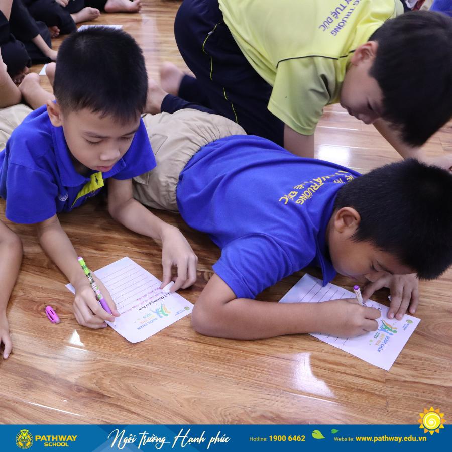 Trước khi chính thức sải bước trên đường chạy ngày 25/4 của hoạt động “Bước chân bứt phá” để lan tỏa giá trị nhân văn chia sẻ cùng Trung tâm học tập cộng đồng phường Tân Thới Nhất, Trung tâm học tập cộng đồng phường Thạnh Lộc, Trung tâm nuôi trẻ xương thủy tinh Kim Cương Tươi Đẹp (Thạnh Lộc), Quận 12, học sinh Tiểu học Pathway đã ngồi lại bên nhau, gói ghém yêu thương vào từng con chữ, gửi đến các em nhỏ kém may mắn.