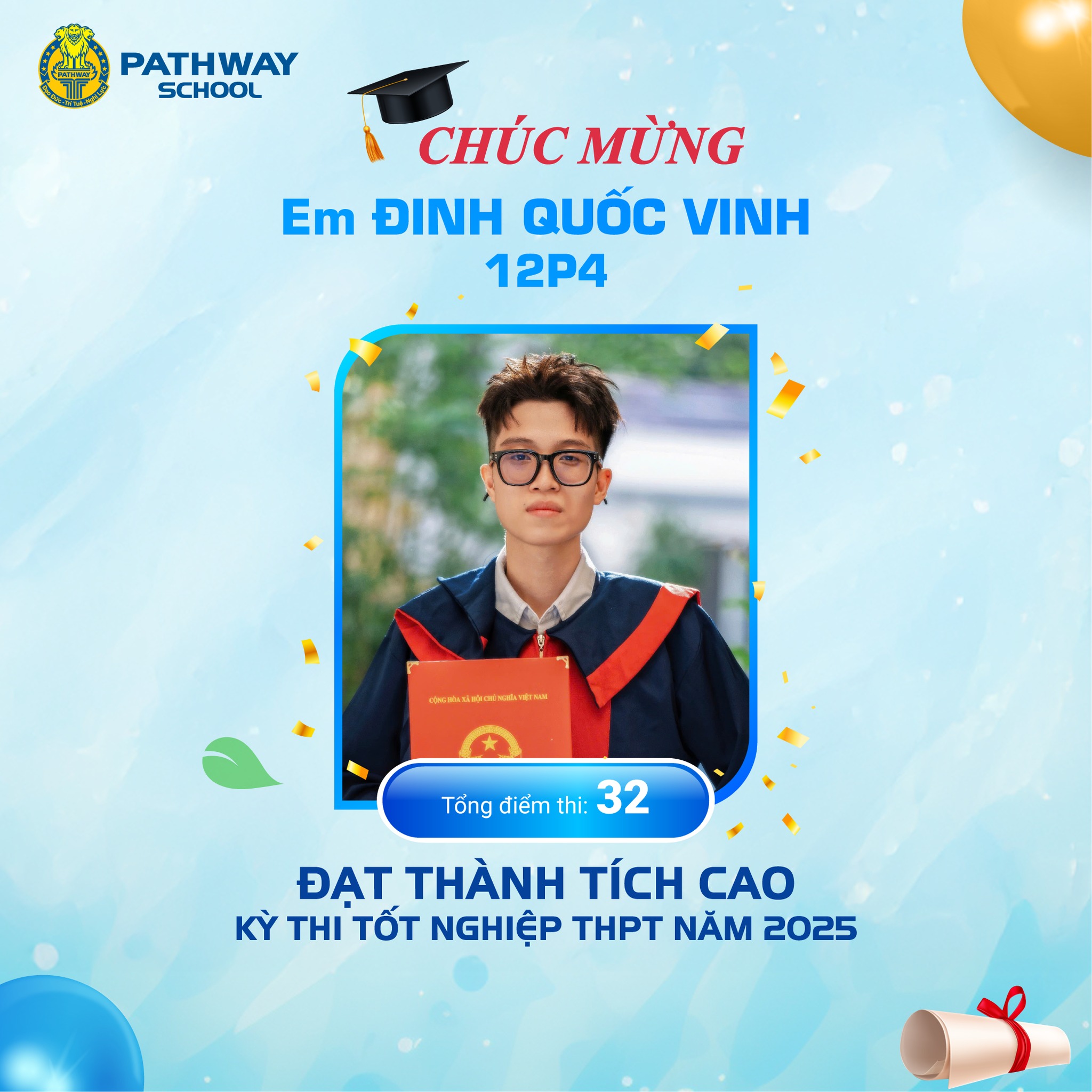 - Em Đinh Quốc Vinh, Lớp 12P4, Cơ sở Nguyễn Sỹ Sách, Tổng điểm: 32